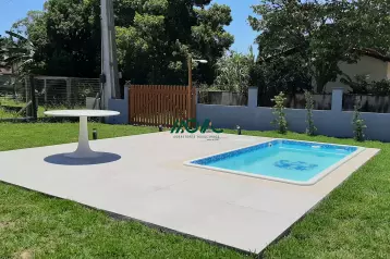 Casa de esquina, localizada no Balneário Farol do Itapoá II, com área construída de aproximadamente 90 m² e terreno total de 162 m².